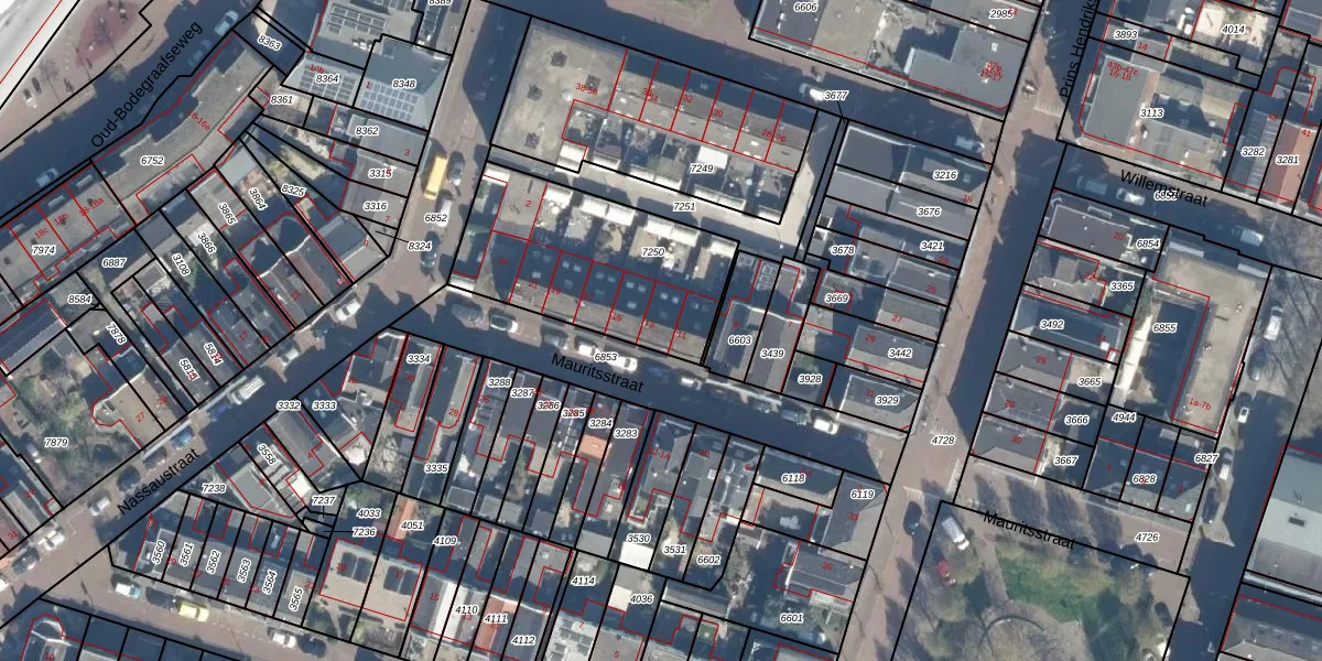 Het perceel waarop Mauritsstraat 13 staat heeft een oppervlakte van 785 m². Dit is een groot perceel. De perceeloppervlakte wordt geregistreerd door het Kadaster. Gedetailleerde informatie over de maten van dit perceel kunt u vinden in het rapport Kadastrale kaart met maatvoering van Mauritsstraat 13.