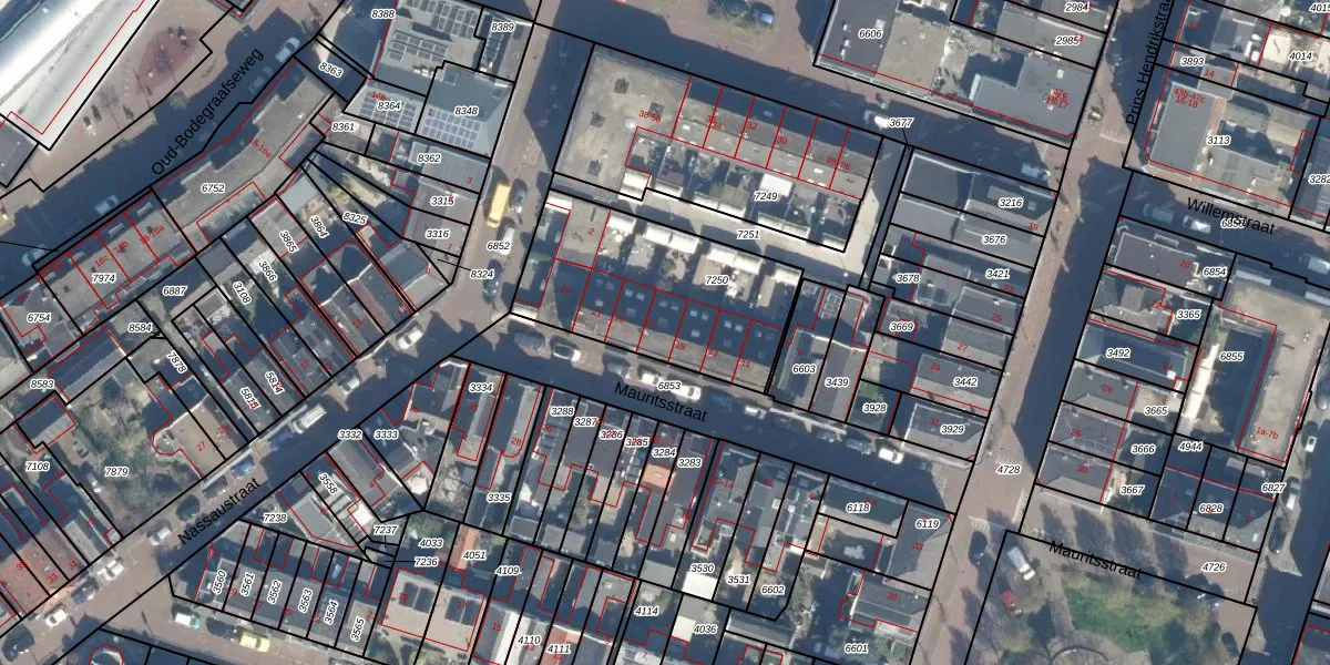 Mauritsstraat 17 is gelegen op kadastraal perceel BDG00C7250. Deze kadastrale aanduiding is uniek en wordt gebruikt door het Kadaster om eigendomsrechten en andere zakelijke rechten vast te leggen. Het perceel maakt onderdeel uit van de kadastrale gemeente Bodegraven.