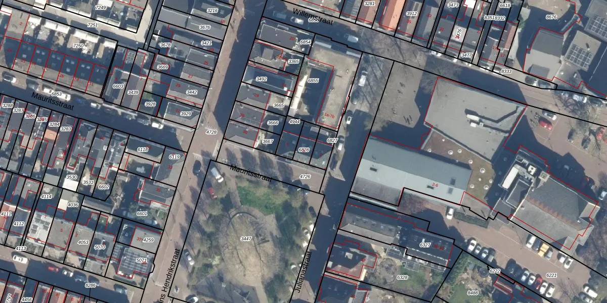 Het perceel waarop Mauritsstraat 3 staat heeft een oppervlakte van 76 m². Dit is een klein perceel. De perceeloppervlakte wordt geregistreerd door het Kadaster. Gedetailleerde informatie over de maten van dit perceel kunt u vinden in het rapport Kadastrale kaart met maatvoering van Mauritsstraat 3.