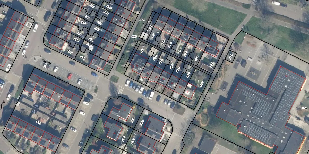 Het perceel waarop Merel 22 staat heeft een oppervlakte van 147 m². Dit is een middelgroot perceel. De perceeloppervlakte wordt geregistreerd door het Kadaster. Gedetailleerde informatie over de maten van dit perceel kunt u vinden in het rapport Kadastrale kaart met maatvoering van Merel 22.