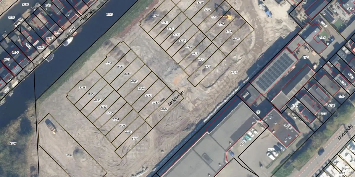 Het perceel waarop Molenvliet 22 staat heeft een oppervlakte van 8423 m². Dit is een zeer groot perceel. De perceeloppervlakte wordt geregistreerd door het Kadaster. Gedetailleerde informatie over de maten van dit perceel kunt u vinden in het rapport Kadastrale kaart met maatvoering van Molenvliet 22.