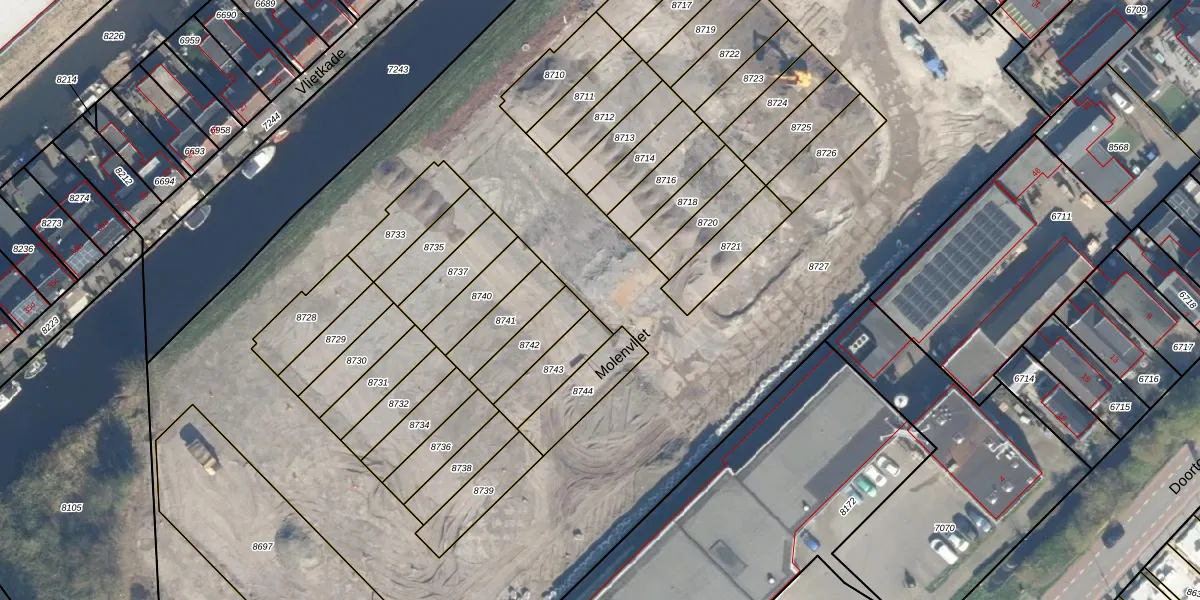 Het perceel waarop Molenvliet 23 staat heeft een oppervlakte van 8423 m². Dit is een zeer groot perceel. De perceeloppervlakte wordt geregistreerd door het Kadaster. Gedetailleerde informatie over de maten van dit perceel kunt u vinden in het rapport Kadastrale kaart met maatvoering van Molenvliet 23.
