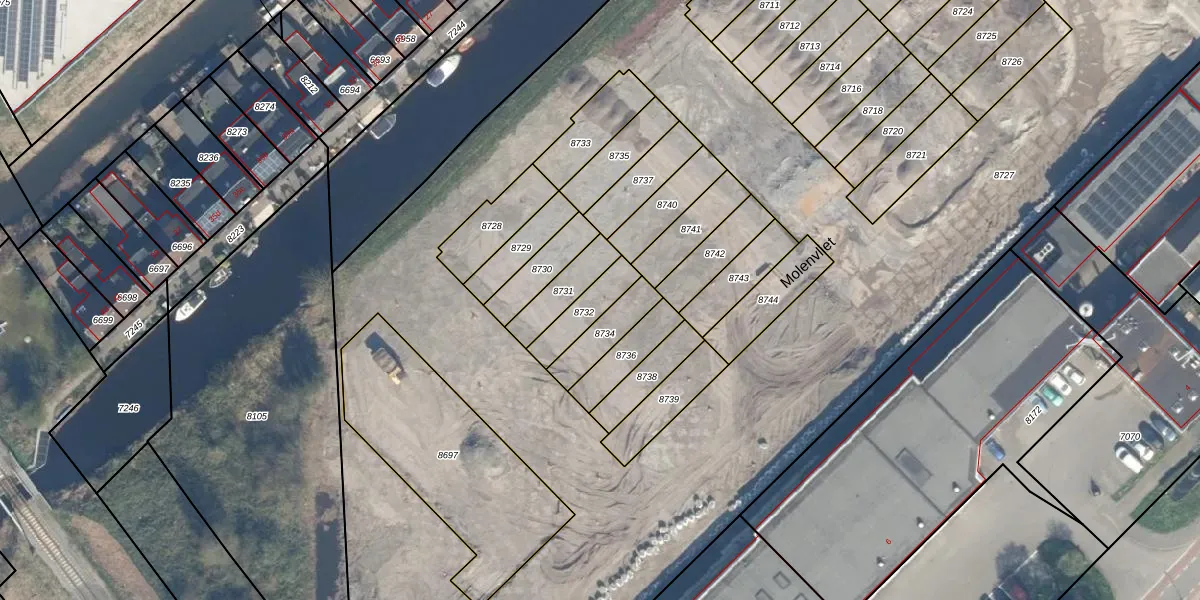 Het perceel waarop Molenvliet 33 staat heeft een oppervlakte van 106 m². Dit is een middelgroot perceel. De perceeloppervlakte wordt geregistreerd door het Kadaster. Gedetailleerde informatie over de maten van dit perceel kunt u vinden in het rapport Kadastrale kaart met maatvoering van Molenvliet 33.