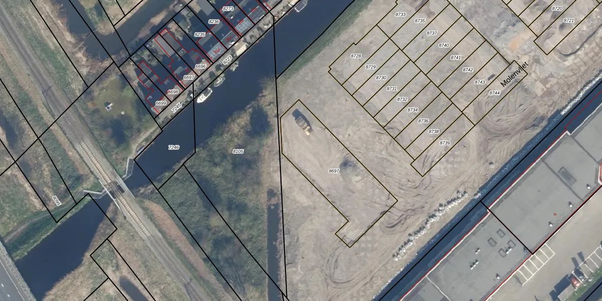 Het perceel waarop Molenvliet 45 staat heeft een oppervlakte van 771 m². Dit is een groot perceel. De perceeloppervlakte wordt geregistreerd door het Kadaster. Gedetailleerde informatie over de maten van dit perceel kunt u vinden in het rapport Kadastrale kaart met maatvoering van Molenvliet 45.