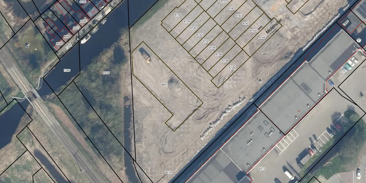 Het perceel waarop Molenvliet 62 staat heeft een oppervlakte van 771 m². Dit is een groot perceel. De perceeloppervlakte wordt geregistreerd door het Kadaster. Gedetailleerde informatie over de maten van dit perceel kunt u vinden in het rapport Kadastrale kaart met maatvoering van Molenvliet 62.