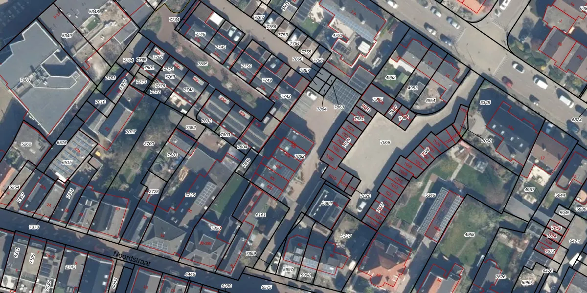Het perceel waarop Noordstraat 40-f staat heeft een oppervlakte van 949 m². Dit is een groot perceel. De perceeloppervlakte wordt geregistreerd door het Kadaster. Gedetailleerde informatie over de maten van dit perceel kunt u vinden in het rapport Kadastrale kaart met maatvoering van Noordstraat 40-f.