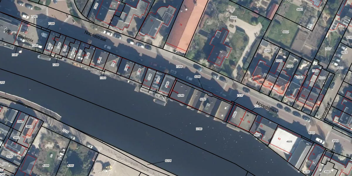 Noordstraat 55 is gelegen op kadastraal perceel BDG00B6050. Deze kadastrale aanduiding is uniek en wordt gebruikt door het Kadaster om eigendomsrechten en andere zakelijke rechten vast te leggen. Het perceel maakt onderdeel uit van de kadastrale gemeente Bodegraven.