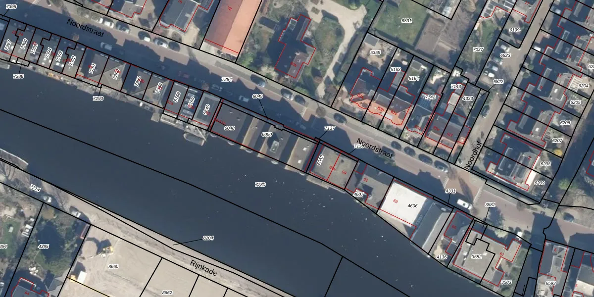 Noordstraat 57-b is gelegen op kadastraal perceel BDG00B6050. Deze kadastrale aanduiding is uniek en wordt gebruikt door het Kadaster om eigendomsrechten en andere zakelijke rechten vast te leggen. Het perceel maakt onderdeel uit van de kadastrale gemeente Bodegraven.