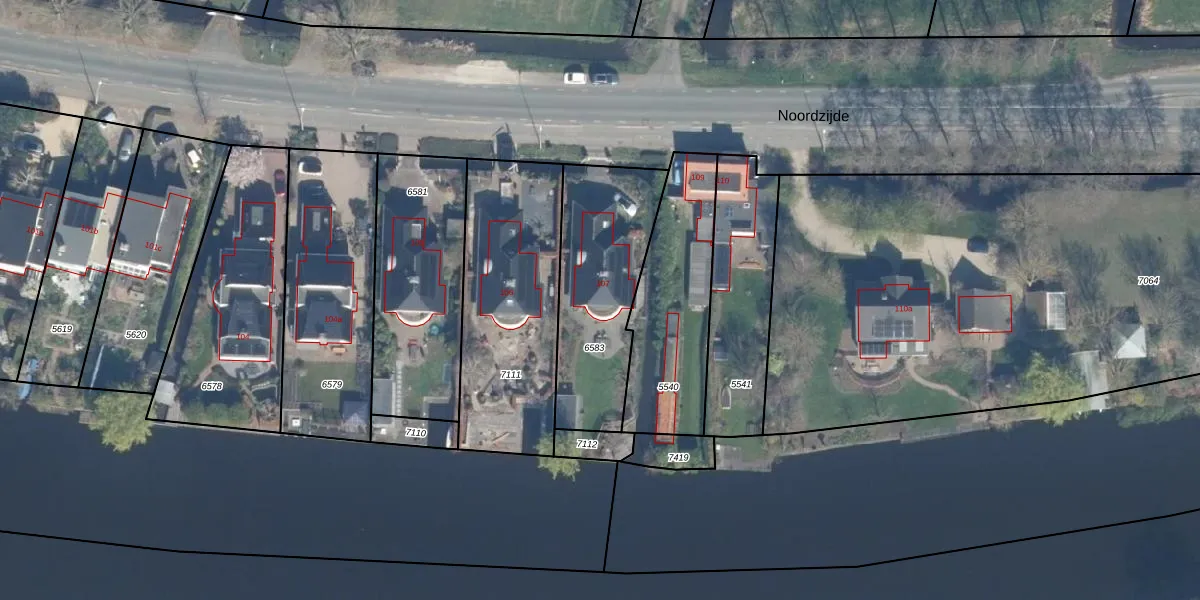 Het perceel waarop Noordzijde 107 staat heeft een oppervlakte van 583 m². Dit is een groot perceel. De perceeloppervlakte wordt geregistreerd door het Kadaster. Gedetailleerde informatie over de maten van dit perceel kunt u vinden in het rapport Kadastrale kaart met maatvoering van Noordzijde 107.