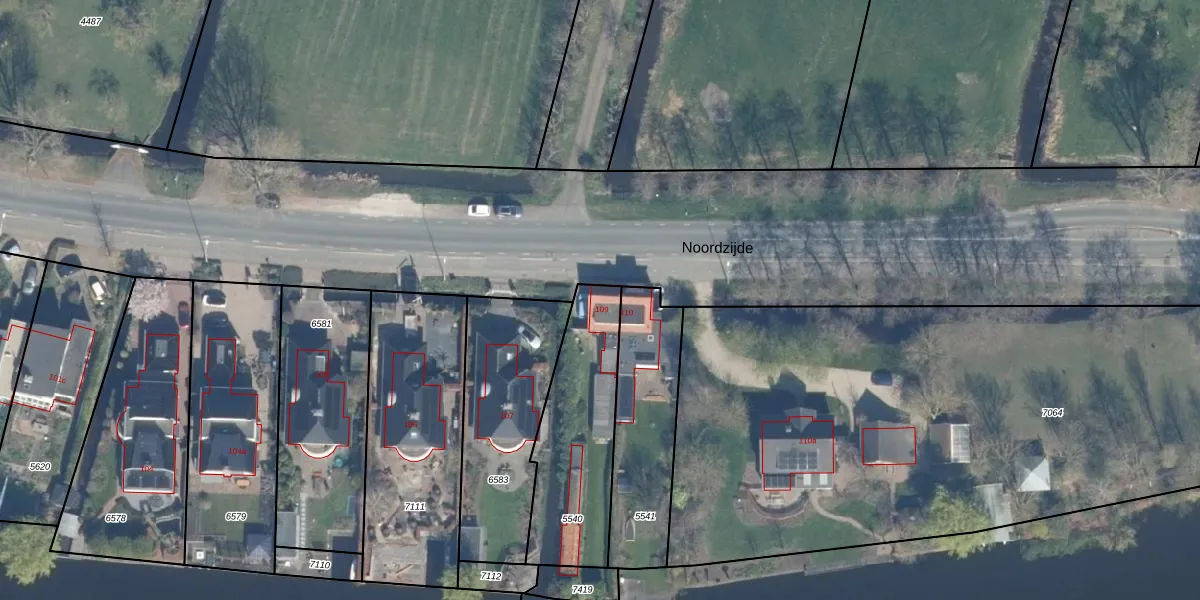 Het perceel waarop Noordzijde 109 staat heeft een oppervlakte van 607 m². Dit is een groot perceel. De perceeloppervlakte wordt geregistreerd door het Kadaster. Gedetailleerde informatie over de maten van dit perceel kunt u vinden in het rapport Kadastrale kaart met maatvoering van Noordzijde 109.