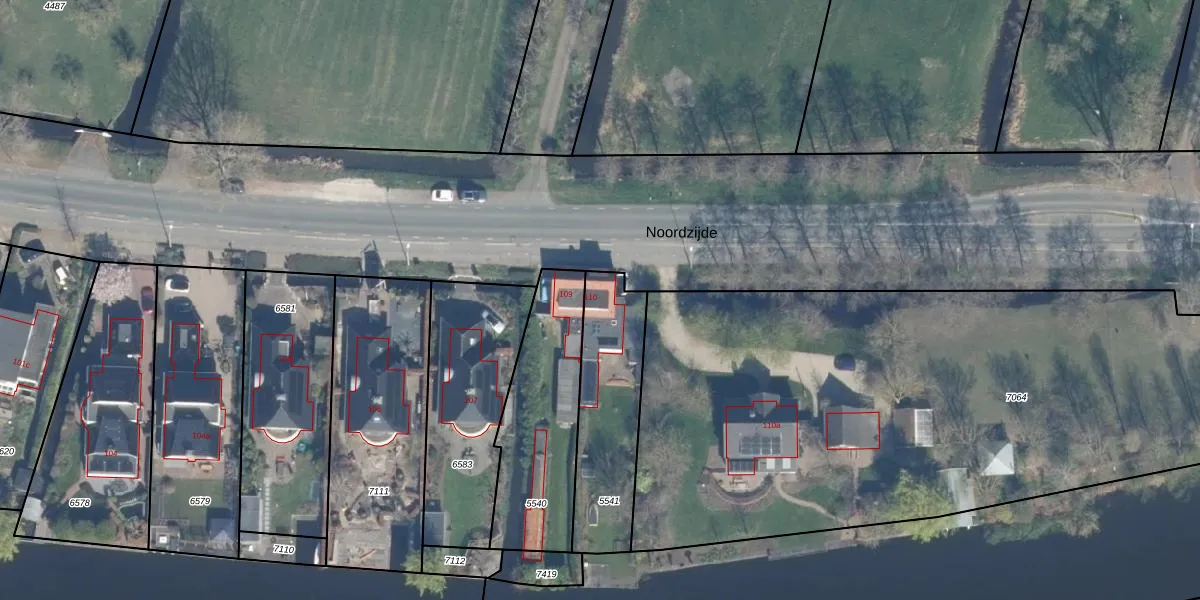 Het perceel waarop Noordzijde 110 staat heeft een oppervlakte van 427 m². Dit is een groot perceel. De perceeloppervlakte wordt geregistreerd door het Kadaster. Gedetailleerde informatie over de maten van dit perceel kunt u vinden in het rapport Kadastrale kaart met maatvoering van Noordzijde 110.