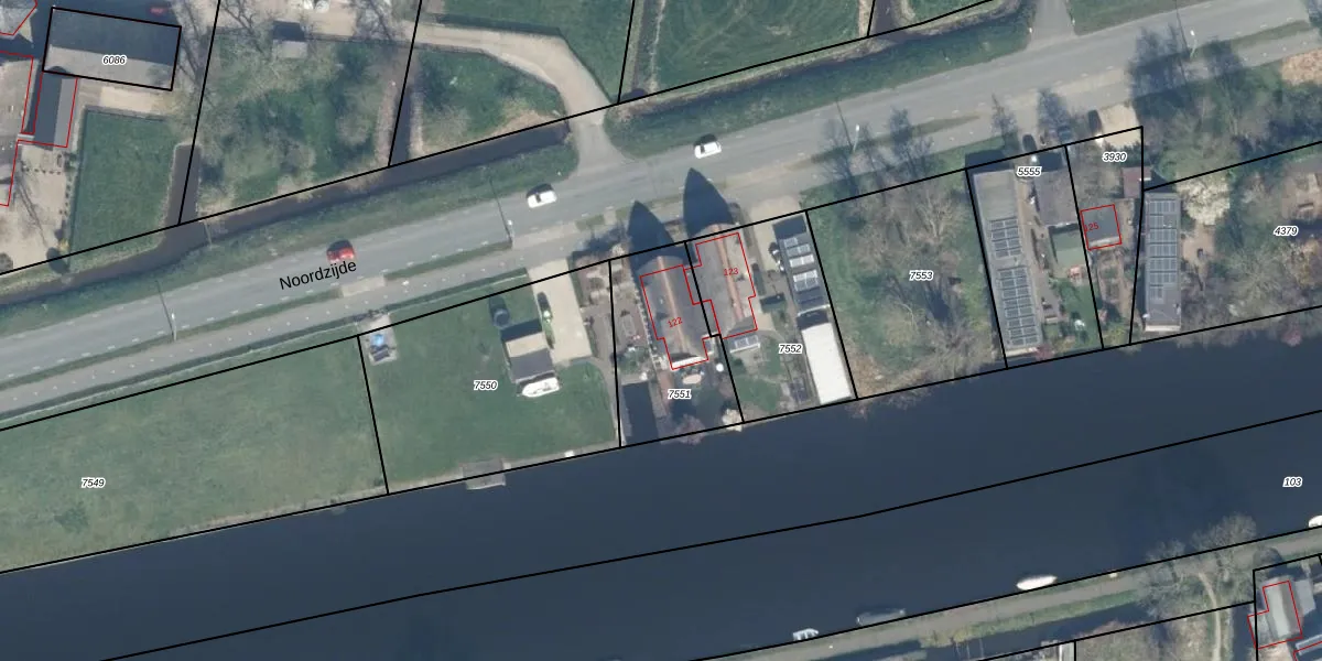 Noordzijde 122 is gelegen op kadastraal perceel BDG00B7551. Deze kadastrale aanduiding is uniek en wordt gebruikt door het Kadaster om eigendomsrechten en andere zakelijke rechten vast te leggen. Het perceel maakt onderdeel uit van de kadastrale gemeente Bodegraven.