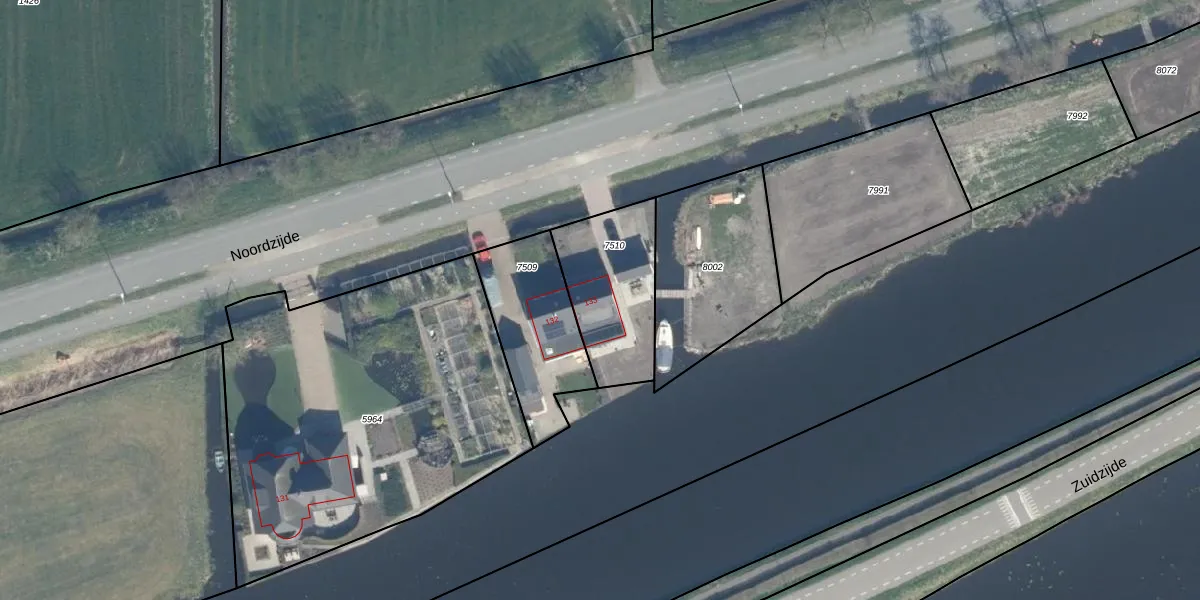 Noordzijde 133 is gelegen op kadastraal perceel BDG00B7510. Deze kadastrale aanduiding is uniek en wordt gebruikt door het Kadaster om eigendomsrechten en andere zakelijke rechten vast te leggen. Het perceel maakt onderdeel uit van de kadastrale gemeente Bodegraven.