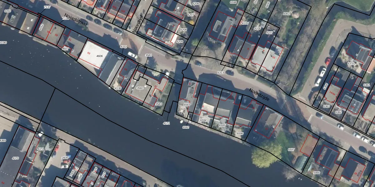 Noordzijde 5 is gelegen op kadastraal perceel BDG00B6593. Deze kadastrale aanduiding is uniek en wordt gebruikt door het Kadaster om eigendomsrechten en andere zakelijke rechten vast te leggen. Het perceel maakt onderdeel uit van de kadastrale gemeente Bodegraven.