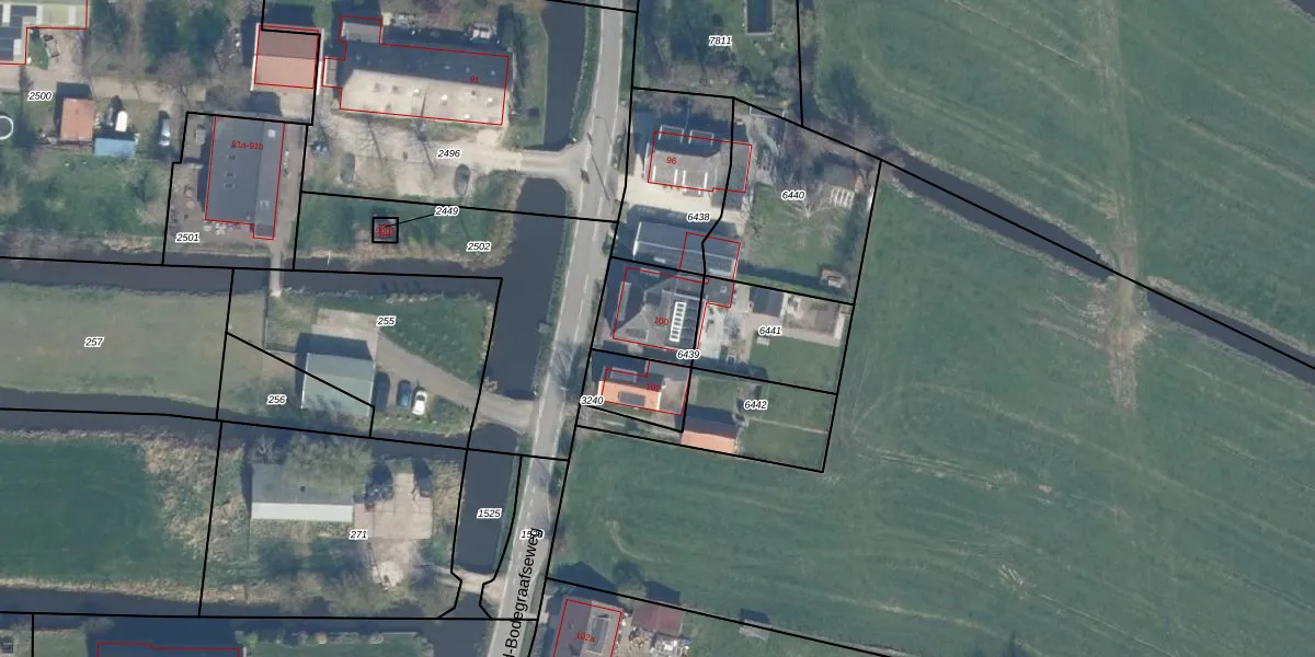 Oud-Bodegraafseweg 100 is gelegen op kadastraal perceel BDG00C6439. Deze kadastrale aanduiding is uniek en wordt gebruikt door het Kadaster om eigendomsrechten en andere zakelijke rechten vast te leggen. Het perceel maakt onderdeel uit van de kadastrale gemeente Bodegraven.