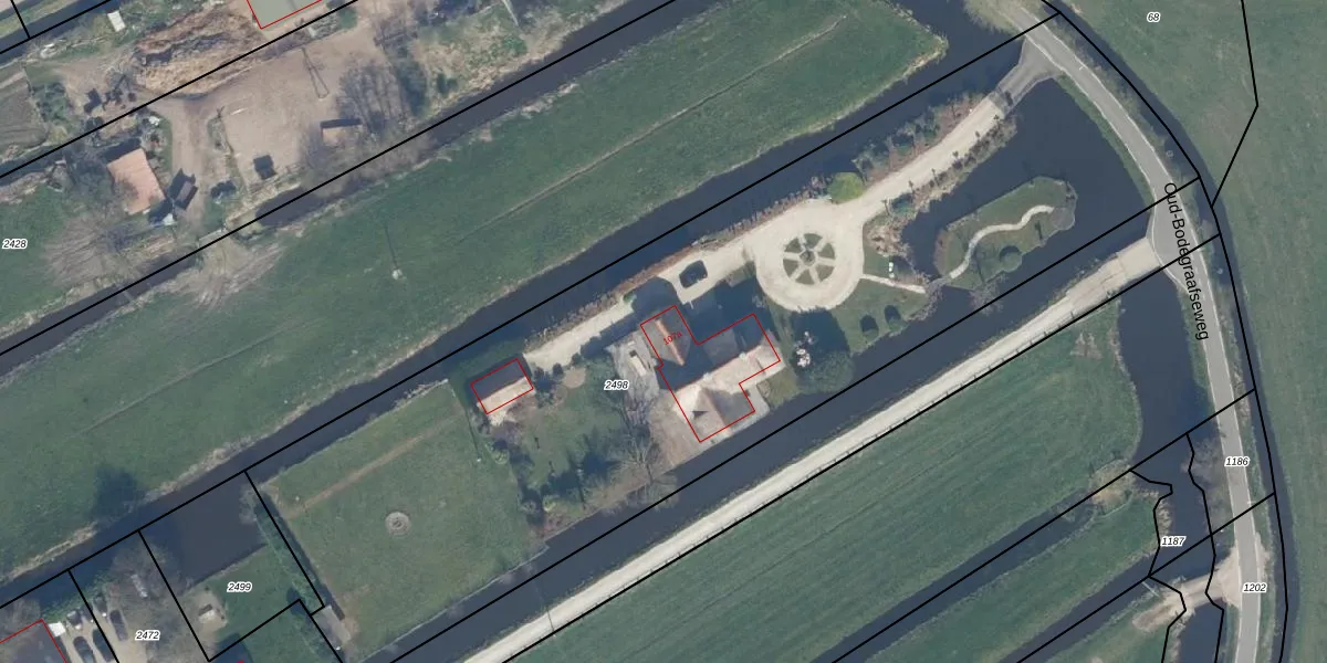 Het adres ligt op het perceel BDG00-E-2498, dat zich in de kadastrale gemeente Bodegraven bevindt. De oppervlakte van het perceel is 4834 m². Dat is groter dan gemiddeld in Bodegraven, waar de gemiddelde perceeloppervlakte op 3221,51 m² ligt. Het kleinste perceel in de kadastrale gemeente is 0 m² groot. De grootste perceeloppervlakte is 36,3 ha. Er zijn geen andere adressen aanwezig op het perceel. De laatste wijziging in het de Basisregistratie Kadaster (BRK) was op 24-01-2022.