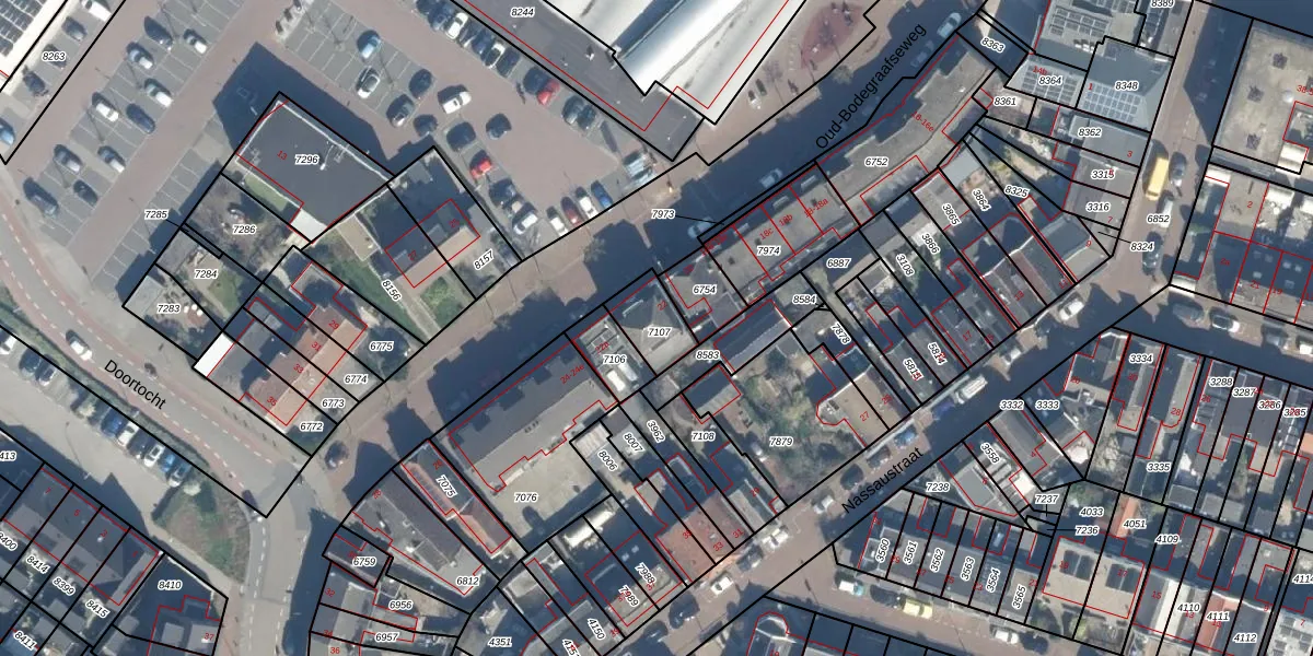 Het perceel waarop het adres ligt is BDG00-C-7107. De afkorting 'BDG00' staat voor kadastrale gemeente Bodegraven. Het perceel is kleiner dan gemiddeld in Bodegraven. Het perceel is 122 m² groot, terwijl het gemiddelde ligt op 3221,51 m². Het grootste perceel in de kadastrale gemeente is 36,3 ha. Het kleinste perceel heeft een oppervlakte van 0 m². Er zijn 2 adressen aanwezig op het perceel. De laatste wijziging in het de Basisregistratie Kadaster (BRK) was op 19-01-2004.