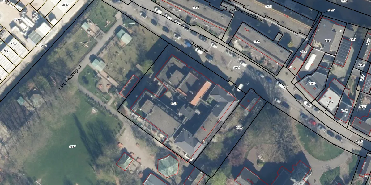 Het adres ligt op het perceel BDG00-C-8013, dat zich in de kadastrale gemeente Bodegraven bevindt. Het perceel is 2360 m² groot. Dat is kleiner dan de gemiddelde perceeloppervlakte in Bodegraven, dat op 3221,51 m² ligt. De grootste perceeloppervlakte in de kadastrale gemeente is 36,3 ha. De kleinste oppervlakte bedraagt 0 m². Op het perceel zijn 31 adressen aanwezig. In de Basisregistratie Kadaster (BRK) werden de grenzen van het perceel geregistreerd op 12-10-2005.