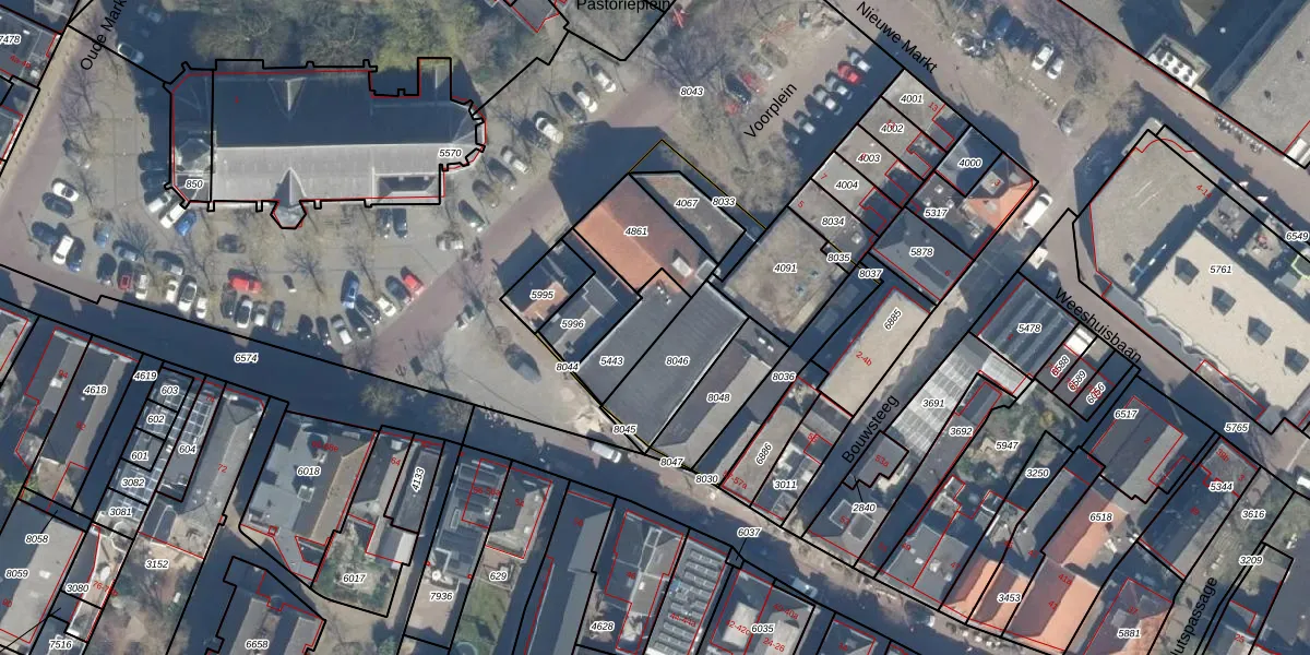 Pastorieplein 45 is gelegen op kadastraal perceel BDG00B5443. Deze kadastrale aanduiding is uniek en wordt gebruikt door het Kadaster om eigendomsrechten en andere zakelijke rechten vast te leggen. Het perceel maakt onderdeel uit van de kadastrale gemeente Bodegraven.
