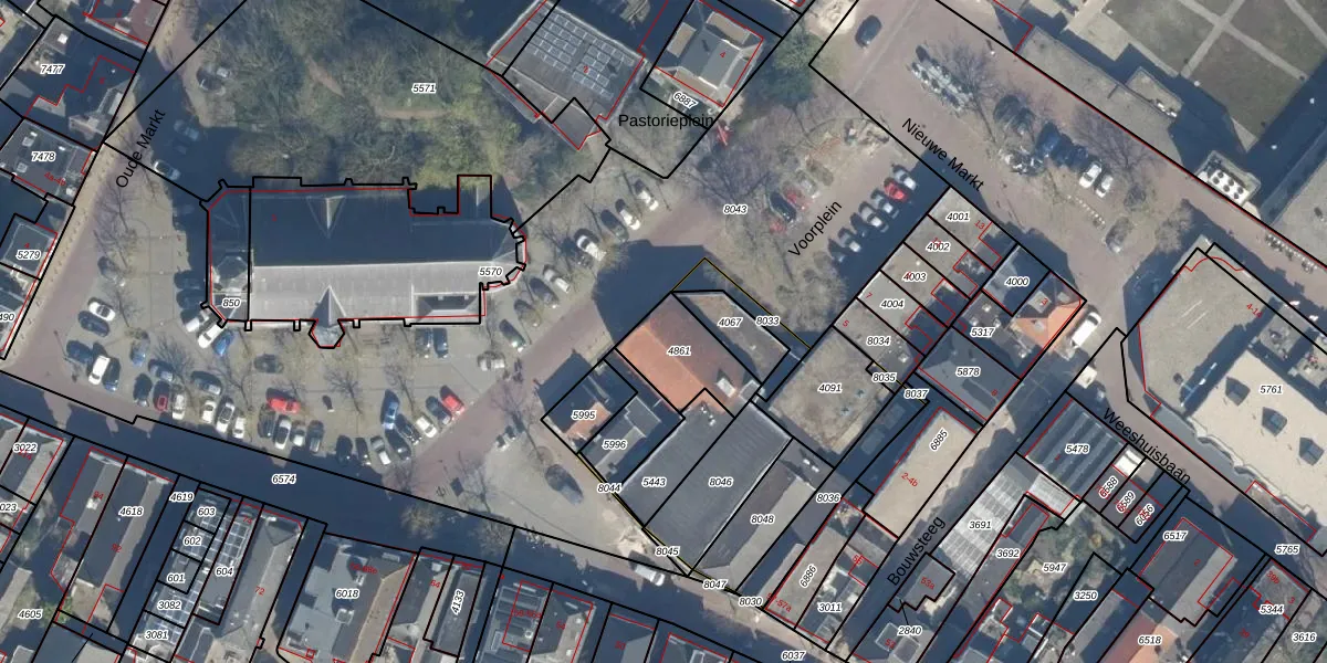 Pastorieplein 53 is gelegen op kadastraal perceel BDG00B4861. Deze kadastrale aanduiding is uniek en wordt gebruikt door het Kadaster om eigendomsrechten en andere zakelijke rechten vast te leggen. Het perceel maakt onderdeel uit van de kadastrale gemeente Bodegraven.
