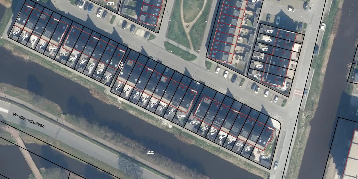 Het adres is gelegen op perceel 1554 in de sectie H en de kadastrale gemeente Bodegraven. De kadastrale aanduiding is aldus BDG00-H-1554. Het perceel is kleiner dan gemiddeld in Bodegraven. Het perceel is 143 m² groot, terwijl het gemiddelde ligt op 3215,6 m². Het grootste perceel in de kadastrale gemeente is 36,3 ha. Het kleinste perceel heeft een oppervlakte van 0 m². Er zijn geen andere adressen aanwezig op het perceel. In de Basisregistratie Kadaster (BRK) werden de grenzen van het perceel geregistreerd op 10-05-2023.