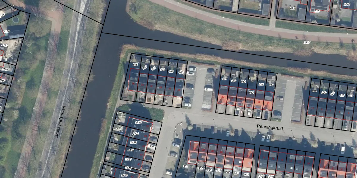 Het perceel waarop Penningkruid 25 staat heeft een oppervlakte van 142 m². Dit is een middelgroot perceel. De perceeloppervlakte wordt geregistreerd door het Kadaster. Gedetailleerde informatie over de maten van dit perceel kunt u vinden in het rapport Kadastrale kaart met maatvoering van Penningkruid 25.