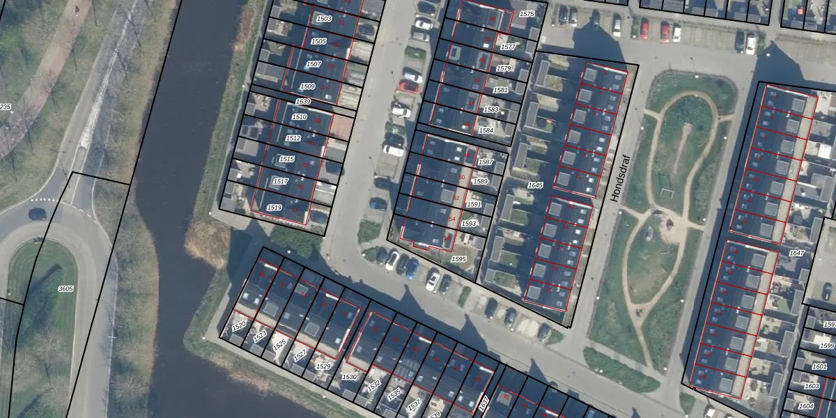 Het adres is gelegen op perceel 1593 in de sectie H en de kadastrale gemeente Bodegraven. De kadastrale aanduiding is aldus BDG00-H-1593. Het perceel is kleiner dan gemiddeld in Bodegraven. Het perceel is 118 m² groot, terwijl het gemiddelde ligt op 3215,6 m². Het grootste perceel in de kadastrale gemeente is 36,3 ha. Het kleinste perceel heeft een oppervlakte van 0 m². Dit is het enige adres dat aanwezig is op het perceel. De laatste wijziging in het de Basisregistratie Kadaster (BRK) was op 26-04-2023.