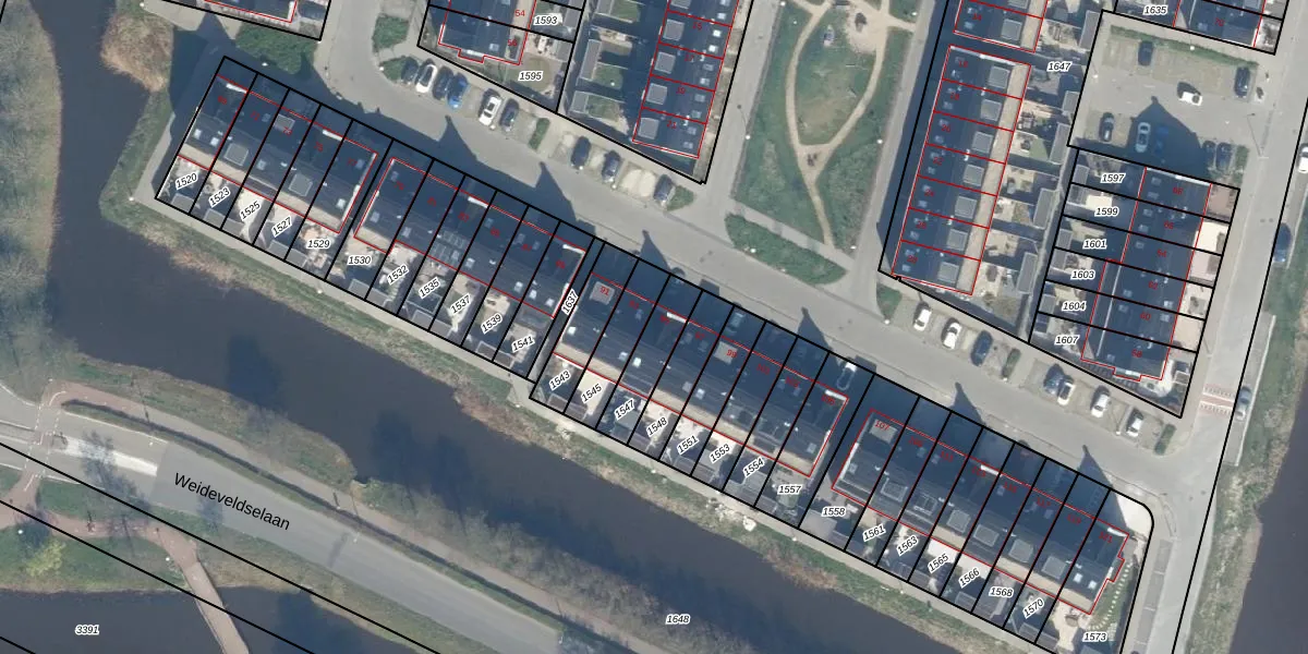 Het adres is gelegen op perceel 1547 in de sectie H en de kadastrale gemeente Bodegraven. De kadastrale aanduiding is aldus BDG00-H-1547. Het perceel is kleiner dan gemiddeld in Bodegraven. Het perceel is 143 m² groot, terwijl het gemiddelde ligt op 3215,6 m². Het grootste perceel in de kadastrale gemeente is 36,3 ha. Het kleinste perceel heeft een oppervlakte van 0 m². Op het perceel bevinden zich geen andere adressen. De huidige grenzen van het perceel zijn digitaal in de Basisregistratie Kadaster (BRK) geregistreerd op 10-05-2023.