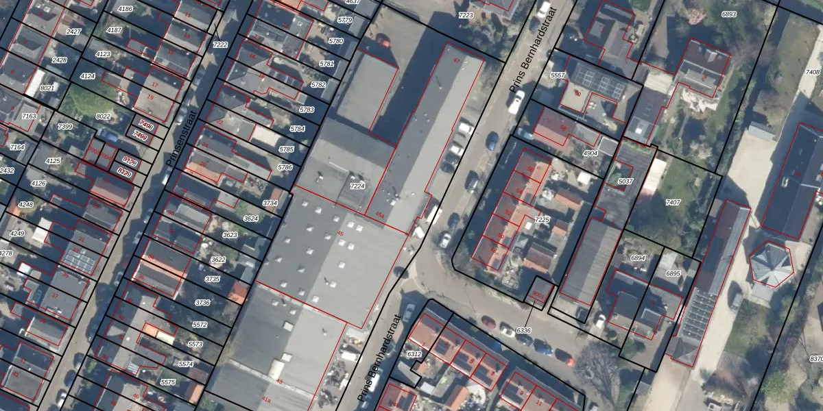Prins Bernhardstraat 45 is gelegen op kadastraal perceel BDG00C7224. Deze kadastrale aanduiding is uniek en wordt gebruikt door het Kadaster om eigendomsrechten en andere zakelijke rechten vast te leggen. Het perceel maakt onderdeel uit van de kadastrale gemeente Bodegraven.