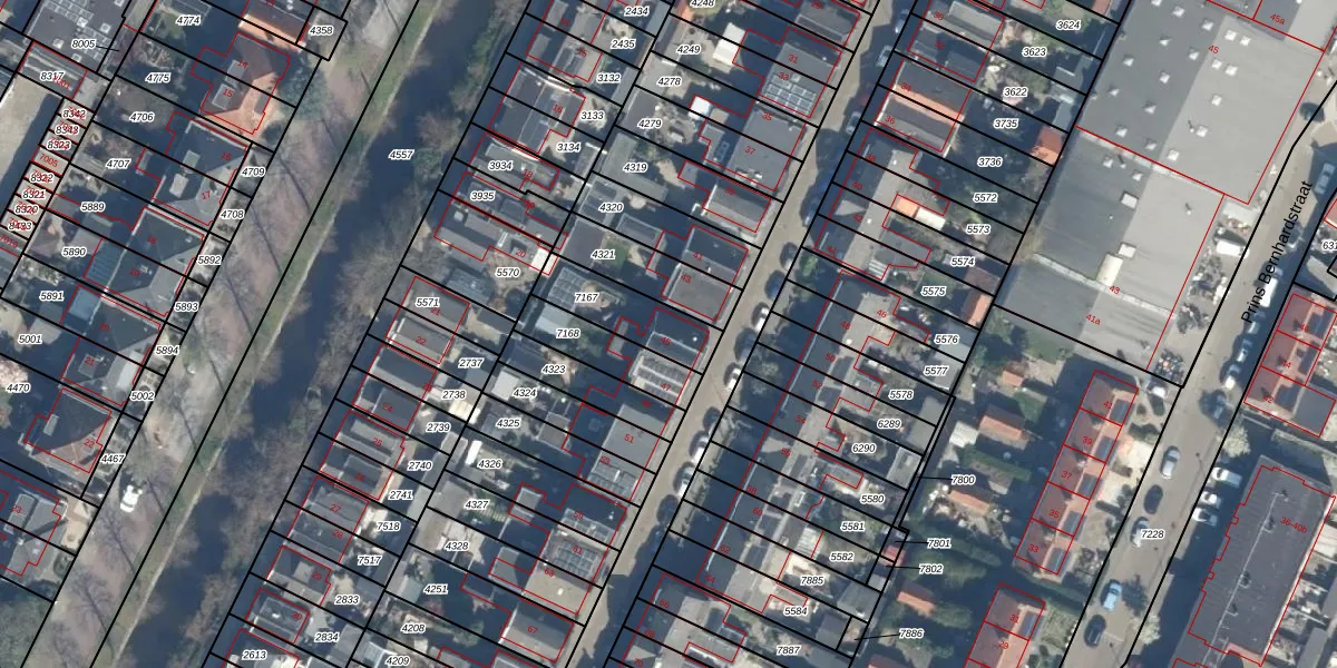 Het perceel waarop Prinsenstraat 45 staat heeft een oppervlakte van 202 m². Dit is een middelgroot perceel. De perceeloppervlakte wordt geregistreerd door het Kadaster. Gedetailleerde informatie over de maten van dit perceel kunt u vinden in het rapport Kadastrale kaart met maatvoering van Prinsenstraat 45.