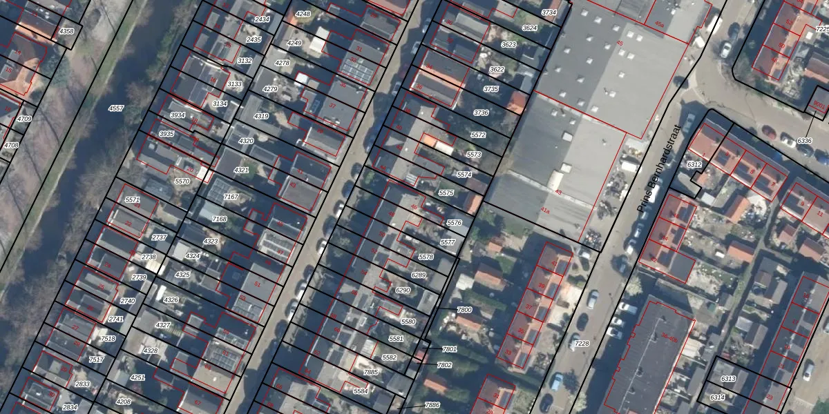 Het perceel waarop Prinsenstraat 46 staat heeft een oppervlakte van 168 m². Dit is een middelgroot perceel. De perceeloppervlakte wordt geregistreerd door het Kadaster. Gedetailleerde informatie over de maten van dit perceel kunt u vinden in het rapport Kadastrale kaart met maatvoering van Prinsenstraat 46.