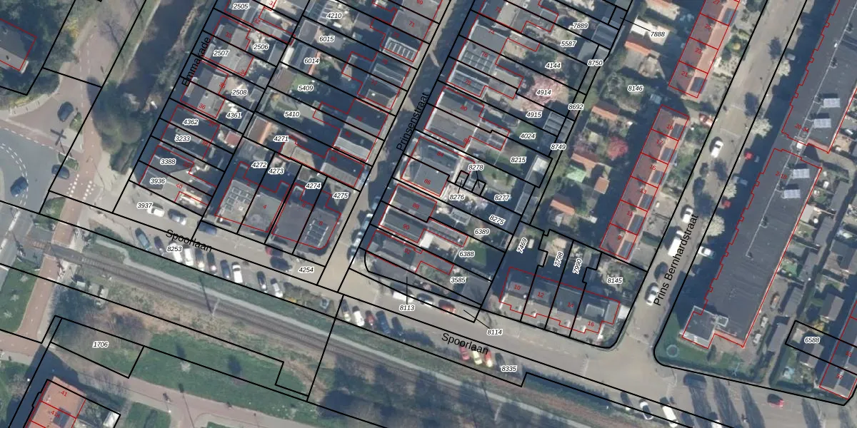 Gebruik de zoekbalk of klik op een perceel voor informatie over de adressen binnen dit perceel.