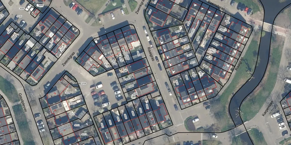Raaigras 3 is gelegen op kadastraal perceel BDG00F3083. Deze kadastrale aanduiding is uniek en wordt gebruikt door het Kadaster om eigendomsrechten en andere zakelijke rechten vast te leggen. Het perceel maakt onderdeel uit van de kadastrale gemeente Bodegraven.