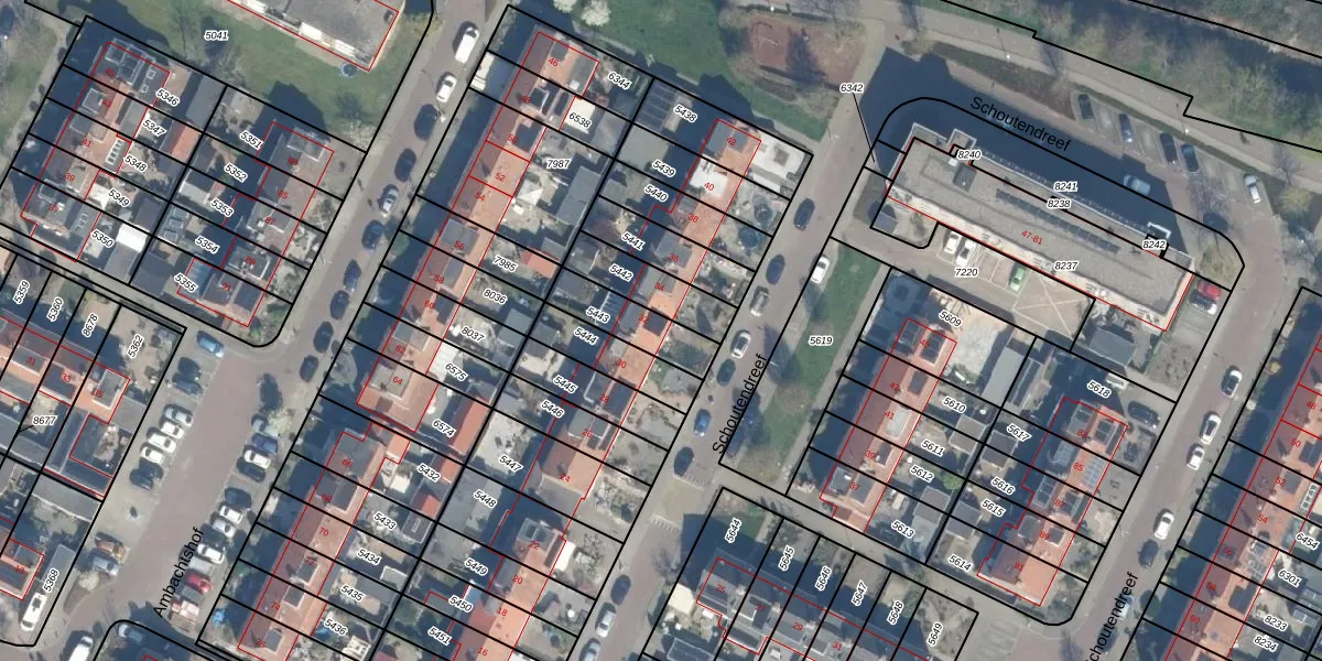 Schoutendreef 32 is gelegen op kadastraal perceel BDG00C5443. Deze kadastrale aanduiding is uniek en wordt gebruikt door het Kadaster om eigendomsrechten en andere zakelijke rechten vast te leggen. Het perceel maakt onderdeel uit van de kadastrale gemeente Bodegraven.