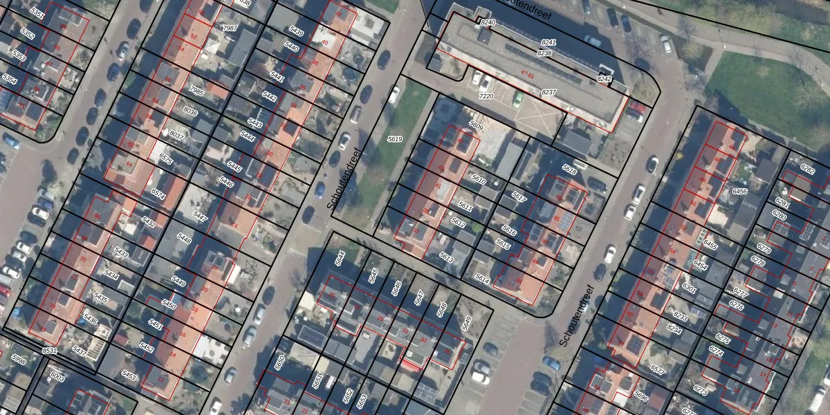 Het perceel waarop Schoutendreef 39 staat heeft een oppervlakte van 142 m². Dit is een middelgroot perceel. De perceeloppervlakte wordt geregistreerd door het Kadaster. Gedetailleerde informatie over de maten van dit perceel kunt u vinden in het rapport Kadastrale kaart met maatvoering van Schoutendreef 39.