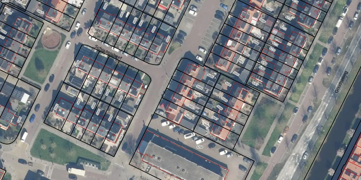 Schoutendreef 80 is gelegen op kadastraal perceel BDG00C5683. Deze kadastrale aanduiding is uniek en wordt gebruikt door het Kadaster om eigendomsrechten en andere zakelijke rechten vast te leggen. Het perceel maakt onderdeel uit van de kadastrale gemeente Bodegraven.