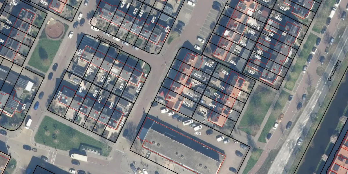 Schoutendreef 82 is gelegen op kadastraal perceel BDG00C5682. Deze kadastrale aanduiding is uniek en wordt gebruikt door het Kadaster om eigendomsrechten en andere zakelijke rechten vast te leggen. Het perceel maakt onderdeel uit van de kadastrale gemeente Bodegraven.