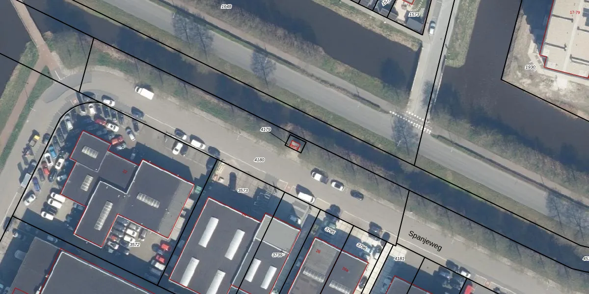 Het perceel waarop Spanjeweg 9002 staat heeft een oppervlakte van 24 m². Dit is een klein perceel. De perceeloppervlakte wordt geregistreerd door het Kadaster. Gedetailleerde informatie over de maten van dit perceel kunt u vinden in het rapport Kadastrale kaart met maatvoering van Spanjeweg 9002.