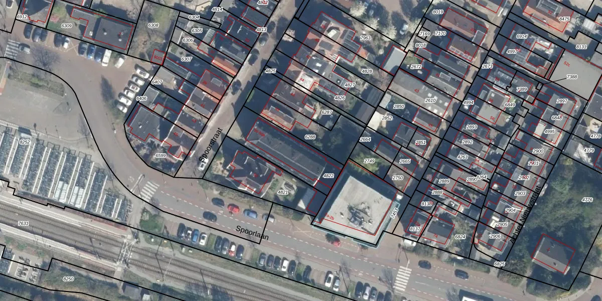 Het perceel waarop Spoorstraat 50-b staat heeft een oppervlakte van 450 m². Dit is een groot perceel. De perceeloppervlakte wordt geregistreerd door het Kadaster. Gedetailleerde informatie over de maten van dit perceel kunt u vinden in het rapport Kadastrale kaart met maatvoering van Spoorstraat 50-b.