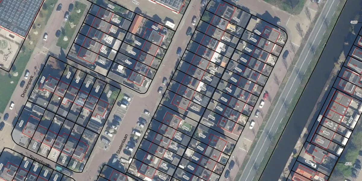 Statenlaan 18 is gelegen op kadastraal perceel BDG00C5847. Deze kadastrale aanduiding is uniek en wordt gebruikt door het Kadaster om eigendomsrechten en andere zakelijke rechten vast te leggen. Het perceel maakt onderdeel uit van de kadastrale gemeente Bodegraven.