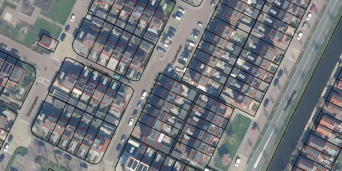 Statenlaan 34 is gelegen op kadastraal perceel BDG00C6237. Deze kadastrale aanduiding is uniek en wordt gebruikt door het Kadaster om eigendomsrechten en andere zakelijke rechten vast te leggen. Het perceel maakt onderdeel uit van de kadastrale gemeente Bodegraven.