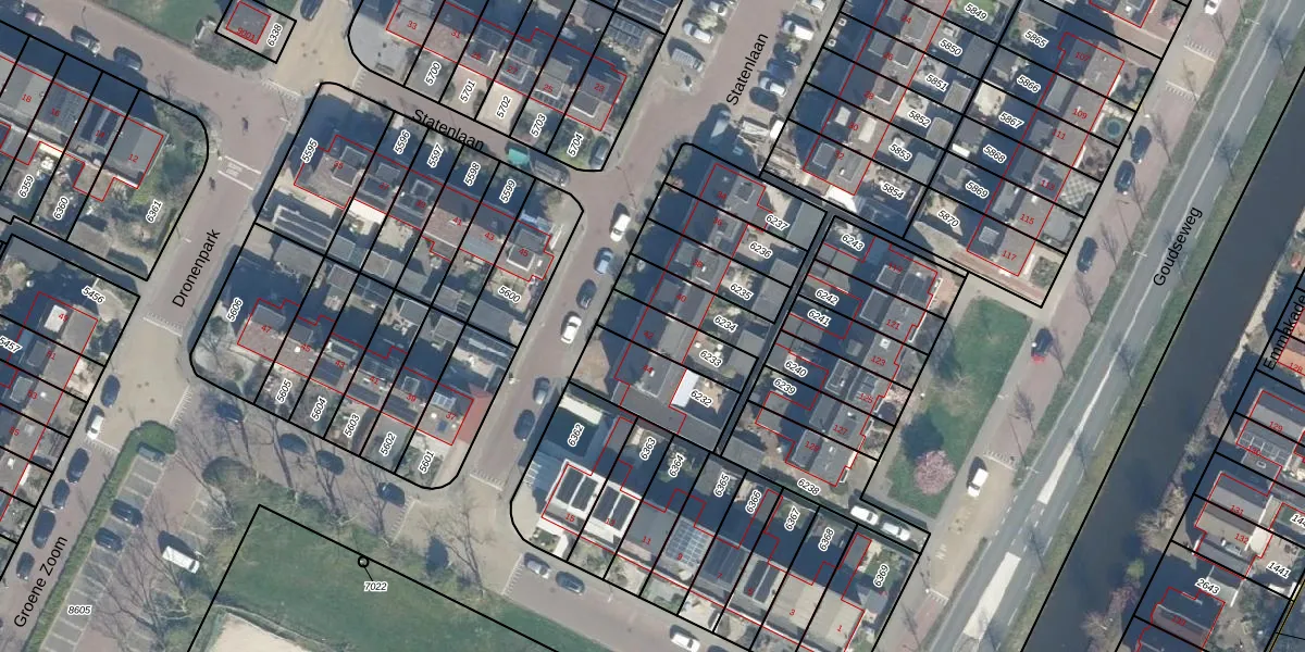 Statenlaan 42 is gelegen op kadastraal perceel BDG00C6233. Deze kadastrale aanduiding is uniek en wordt gebruikt door het Kadaster om eigendomsrechten en andere zakelijke rechten vast te leggen. Het perceel maakt onderdeel uit van de kadastrale gemeente Bodegraven.