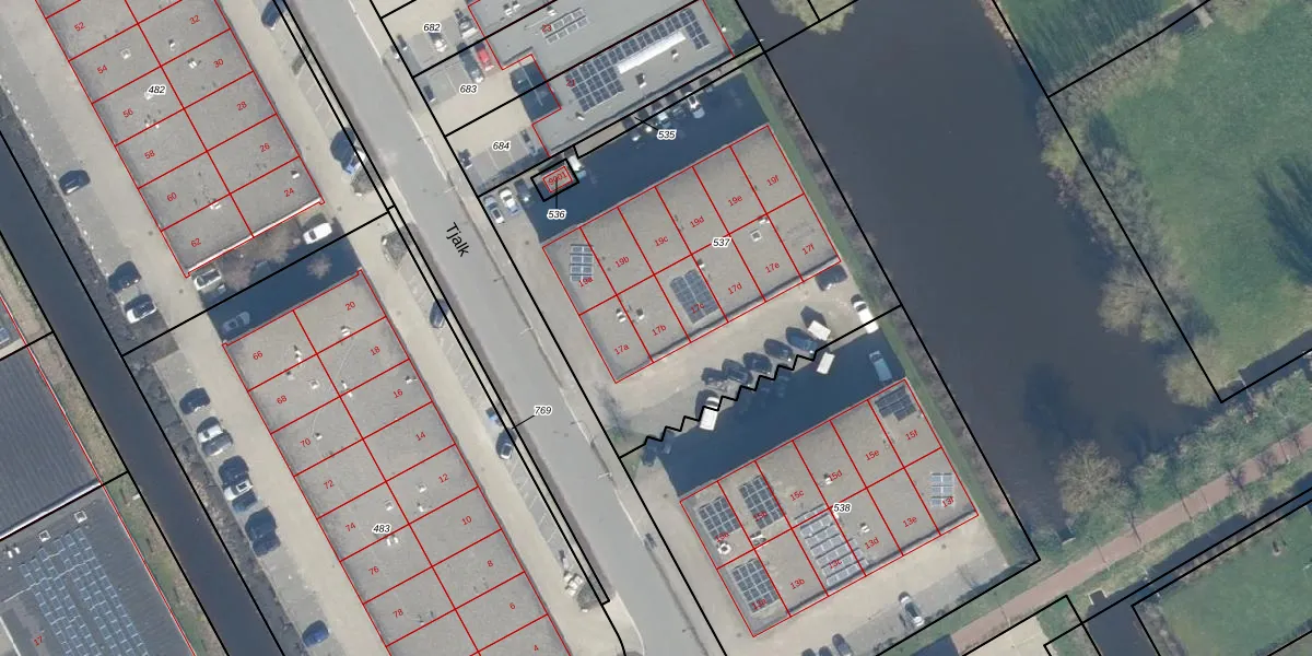 Het perceel waarop Tjalk 17-b staat heeft een oppervlakte van 2134 m². Dit is een zeer groot perceel. De perceeloppervlakte wordt geregistreerd door het Kadaster. Gedetailleerde informatie over de maten van dit perceel kunt u vinden in het rapport Kadastrale kaart met maatvoering van Tjalk 17-b.