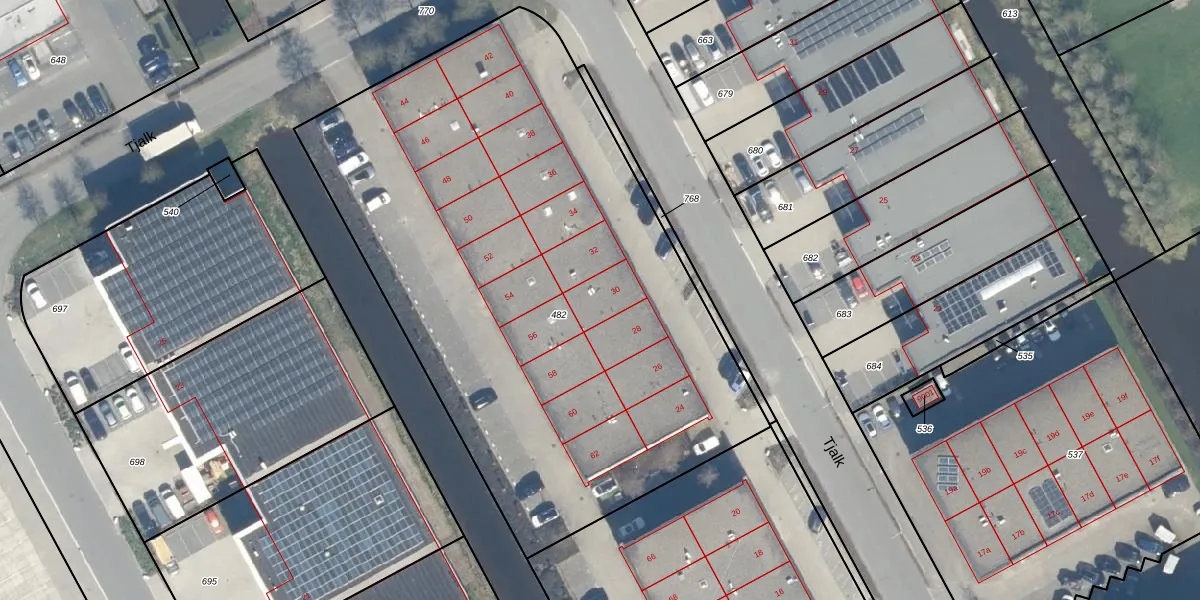 Het perceel waarop Tjalk 30 staat heeft een oppervlakte van 3761 m². Dit is een zeer groot perceel. De perceeloppervlakte wordt geregistreerd door het Kadaster. Gedetailleerde informatie over de maten van dit perceel kunt u vinden in het rapport Kadastrale kaart met maatvoering van Tjalk 30.