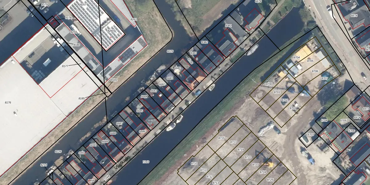 Vlietkade 7 is gelegen op kadastraal perceel BDG00C6681. Deze kadastrale aanduiding is uniek en wordt gebruikt door het Kadaster om eigendomsrechten en andere zakelijke rechten vast te leggen. Het perceel maakt onderdeel uit van de kadastrale gemeente Bodegraven.