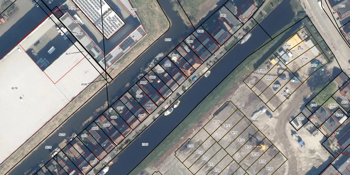 Vlietkade 9 is gelegen op kadastraal perceel BDG00C6682. Deze kadastrale aanduiding is uniek en wordt gebruikt door het Kadaster om eigendomsrechten en andere zakelijke rechten vast te leggen. Het perceel maakt onderdeel uit van de kadastrale gemeente Bodegraven.