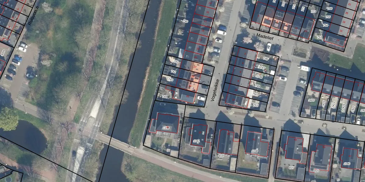 Gebruik de zoekbalk of klik op een perceel voor informatie over de adressen binnen dit perceel.