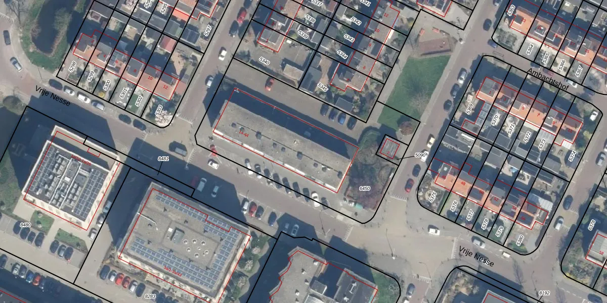 Het perceel waarop Vrije Nesse 32 staat heeft een oppervlakte van 2040 m². Dit is een zeer groot perceel. De perceeloppervlakte wordt geregistreerd door het Kadaster. Gedetailleerde informatie over de maten van dit perceel kunt u vinden in het rapport Kadastrale kaart met maatvoering van Vrije Nesse 32.