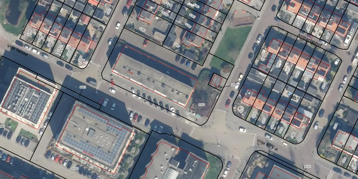 Het perceel waarop Vrije Nesse 36 staat heeft een oppervlakte van 2040 m². Dit is een zeer groot perceel. De perceeloppervlakte wordt geregistreerd door het Kadaster. Gedetailleerde informatie over de maten van dit perceel kunt u vinden in het rapport Kadastrale kaart met maatvoering van Vrije Nesse 36.