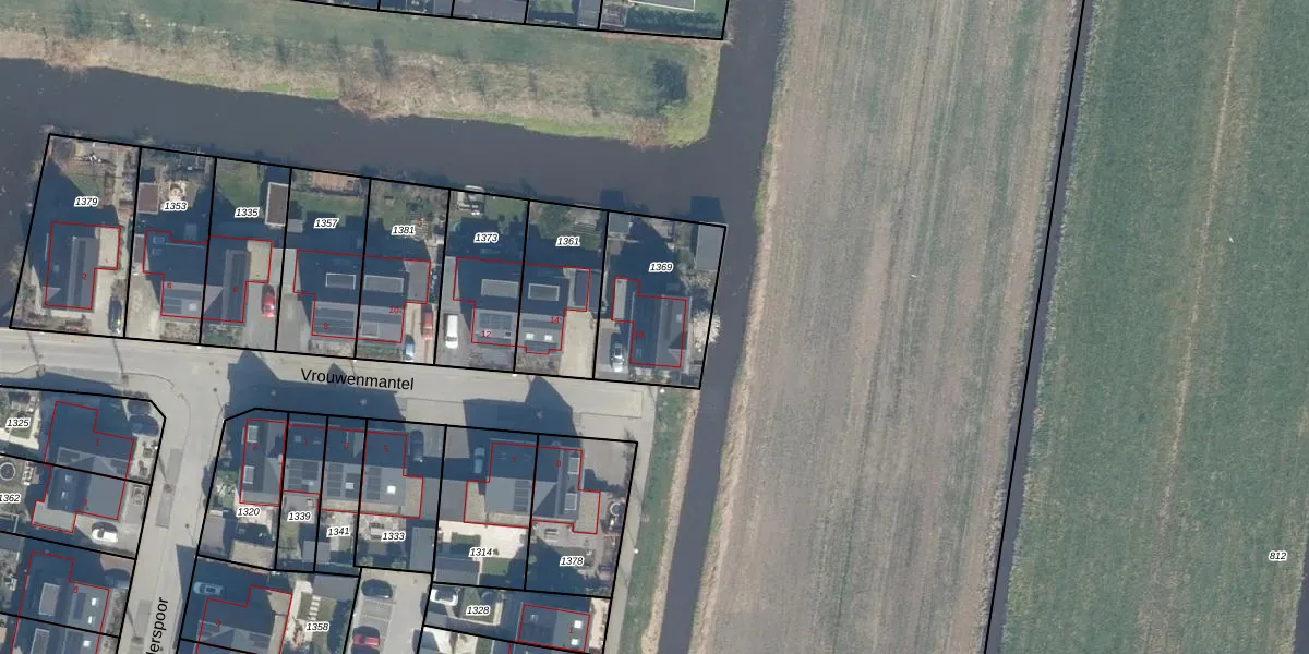 Het perceel waarop Vrouwenmantel 16 staat heeft een oppervlakte van 438 m². Dit is een groot perceel. De perceeloppervlakte wordt geregistreerd door het Kadaster. Gedetailleerde informatie over de maten van dit perceel kunt u vinden in het rapport Kadastrale kaart met maatvoering van Vrouwenmantel 16.